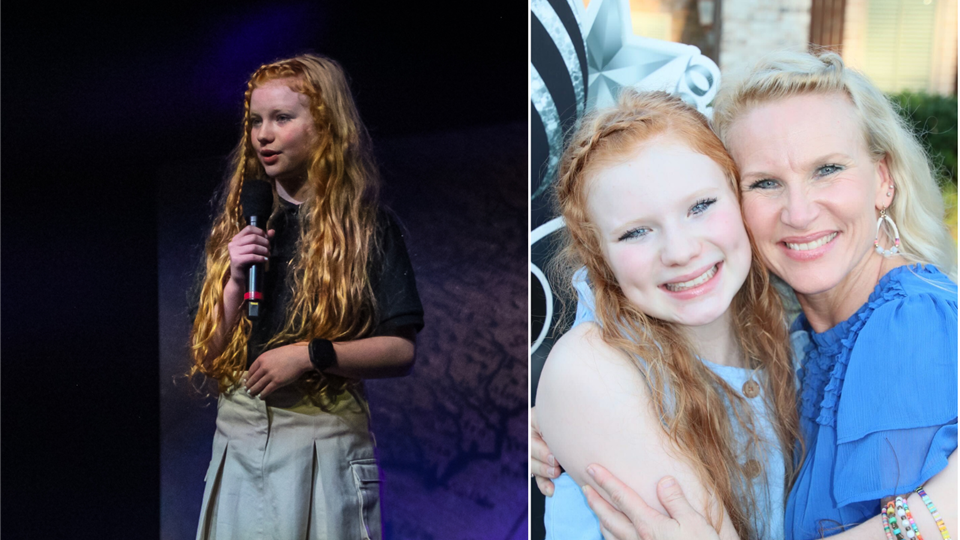 Student Contributor Layla Westbrook visited with EAST parent Amber Long, who has seen firsthand how EAST has impact her daughter's personal growth and education.